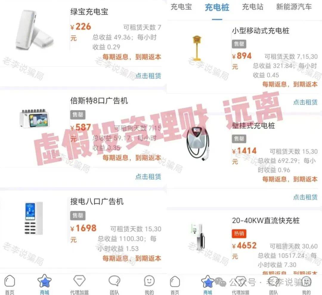 以充电桩、充电站实体概念包装理财产品,要求用USDT认购,承诺远高于市场的高回报,设团队奖励机制。